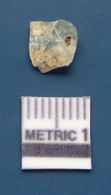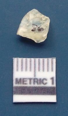 | Description / विवरण | It is chalcedony flake, translucent in appearance. The piece shows sharp pointed ends and flake scars on the surface as a result of flaking. The piece shows a bulb of percussion. |