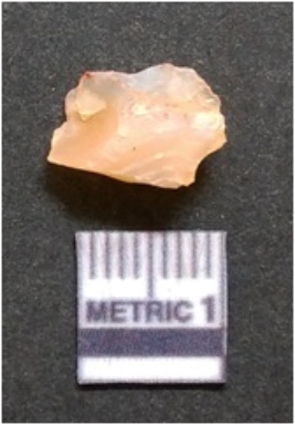 | Description / विवरण | It is chalcedony flake, translucent in appearance. The piece shows sharp pointed ends and flake scars on the surface as a result of flaking. The piece shows a bulb of percussion. |