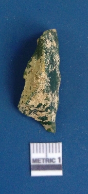 | Description / विवरण | The chert piece is dark in color, with a prominent bulb of percussion and sharp flaked edges. The piece is a part of lithic debitage or raw material for lithic knapping. The piece shows clear ripple marks and bulb of percussion. |