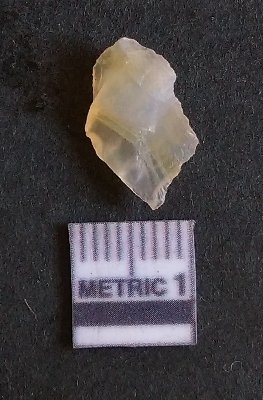 | Description / विवरण | The chalcedony flake is pale yellow in color. Translucent in appurtenance. The piece is shows sharp pointed ends and flake scars on the surface. As a result of flaking. |