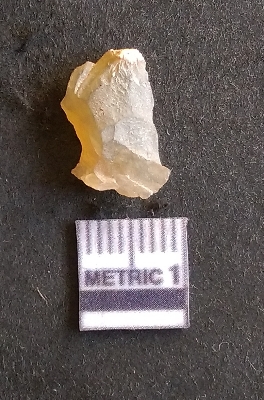 | Description / विवरण | The chalcedony flake is pale yellow in color. Translucent in appurtenance. The piece is shows sharp pointed ends and flake scars on the surface. As a result of flaking. |