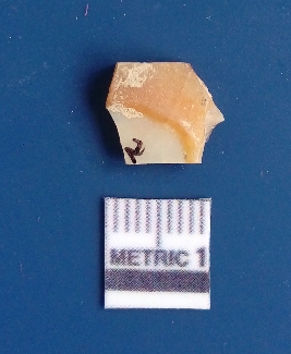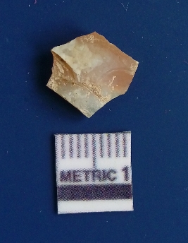 | Description / विवरण | It is chalcedony flake, translucent in appearance. The piece shows sharp pointed ends and flake scars on the surface as a result of flaking. The piece shows a bulb of percussion. |
