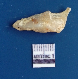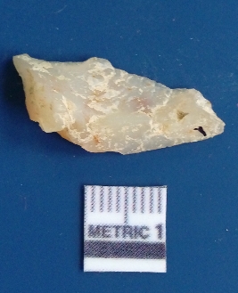 | Description / विवरण | The chert piece is dark in color, with a prominent bulb of percussion and sharp flaked edges. The piece is a part of lithic debitage or raw material for lithic knapping. The piece shows clear ripple marks and bulb of percussion. |