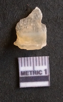 | Description / विवरण | The chalcedony flake is pale yellow in color. Translucent in appurtenance. The piece is shows sharp pointed ends and flake scars on the surface. As a result of flaking. |