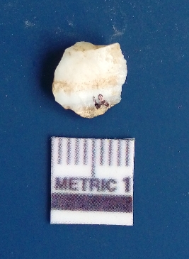 | Description / विवरण | The quartz flake has sharp flaked edges and pointed ends as a result of flaking. The piece is semi-transparent in nature with irregular fracture pattern. The piece is roughly triangular in shape and has a prominent bulb of percussion. |