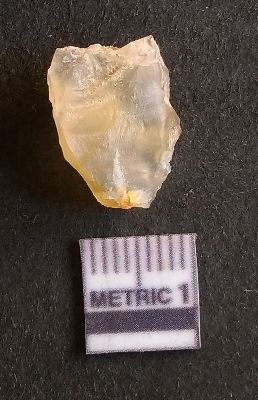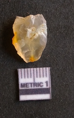 | Description / विवरण | The chalcedony flake is pale yellow in color. Translucent in appurtenance. The piece is shows sharp pointed ends and flake scars on the surface. As a result of flaking. |