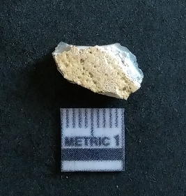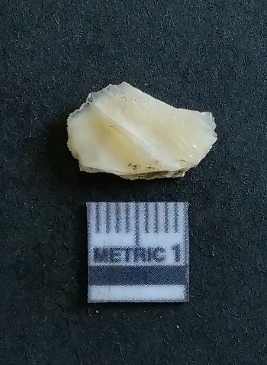 | Description / विवरण | The quartz flake is white in colour, with crypto-crystalline matrix and sharp flaked edges as a result of flaking activity. |