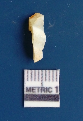 | Description / विवरण | It is chalcedony flake, translucent in appearance. The piece shows sharp pointed ends and flake scars on the surface as a result of flaking. The piece shows a bulb of percussion. |