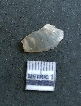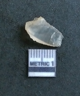 | Description / विवरण | The quartz flake is white in colour, with crypto-crystalline matrix and sharp flaked edges as a result of flaking activity. |