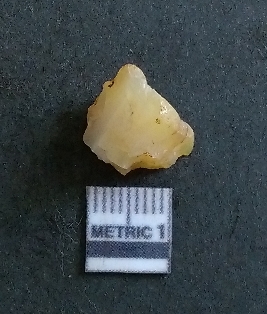 | Description / विवरण | The chalcedony flake is brown in colour, semi-transparent and with sharp flaked ends. The piece is crypto-crystalline in nature and exhibits profusion of secondary flaking. |