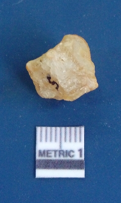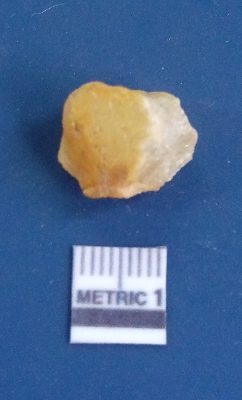| Description / विवरण | The quartz flake has sharp flaked edges and pointed ends as a result of flaking. The piece is semi-transparent in nature with irregular fracture pattern. The piece is roughly triangular in shape and has a prominent bulb of percussion. |
