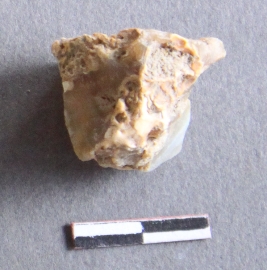 | Description / विवरण | The agate fragment has numerous flake scars and sharp edges. It is roughly cuboid in shape, with angular sides and sharp edges. |