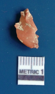 | Description / विवरण | The chert piece is dark in color, with a prominent bulb of percussion and sharp flaked edges. The piece is a part of lithic debitage or raw material for lithic knapping. The piece shows clear ripple marks and bulb of percussion. |