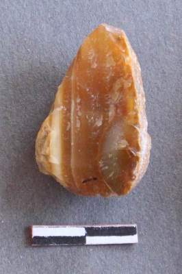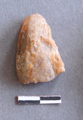 | Description / विवरण | The chalcedony piece is roughly orange in color also has pointed ends. |