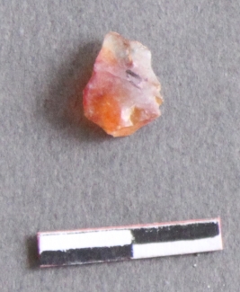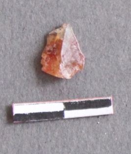 | Description / विवरण | A small fragment of carnelian with bulb of percussion can be seen on one side flaked ridges on the other. |