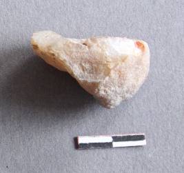 | Description / विवरण | It is a chalcedony fragment and has cortex intact on the surface and has a few flakes ridges on the surface. |