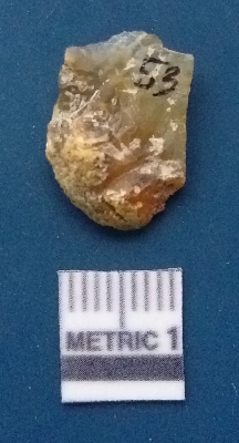 | Description / विवरण | The chert piece is dark in color, with a prominent bulb of percussion and sharp flaked edges. The piece is a part of lithic debitage or raw material for lithic knapping. The piece shows clear ripple marks and bulb of percussion. |