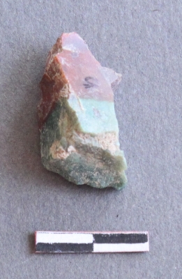 | Description / विवरण | Chert stone with sharp cut edges, flaked and with ridges. Ripples are also seen on the surface. |