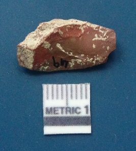 | Description / विवरण | The chert piece is dark in color, with a prominent bulb of percussion and sharp flaked edges. The piece is a part of lithic debitage or raw material for lithic knapping. The piece shows clear ripple marks and bulb of percussion. |