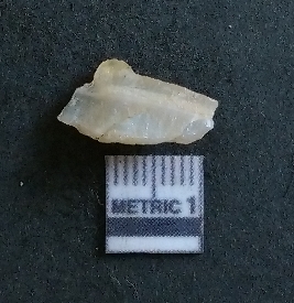 | Description / विवरण | The quartz flake is white in colour, with crypto-crystalline matrix and sharp flaked edges as a result of flaking activity. |
