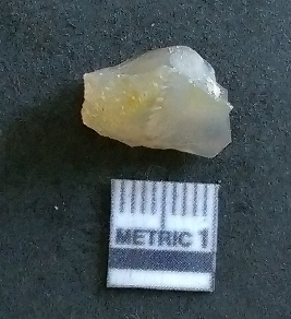 | Description / विवरण | The chalcedony flake is brown in colour, semi-transparent and with sharp flaked ends. The piece is crypto-crystalline in nature and exhibits profusion of secondary flaking. |