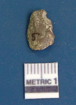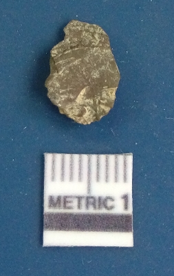 | Description / विवरण | The chert piece is dark in color, with a prominent bulb of percussion and sharp flaked edges. The piece is a part of lithic debitage or raw material for lithic knapping. The piece shows clear ripple marks and bulb of percussion. |