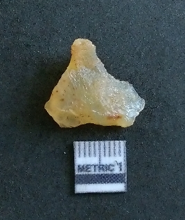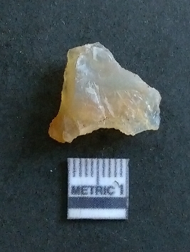 | Description / विवरण | The chalcedony flake is brown in colour, semi-transparent and with sharp flaked ends. The piece is crypto-crystalline in nature and exhibits profusion of secondary flaking. |