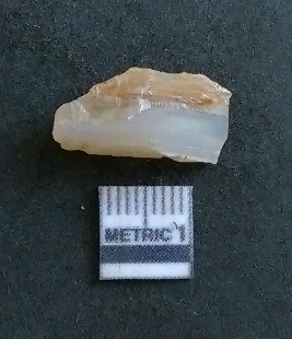 | Description / विवरण | The agate piece is pale in colour, with sharp edges and flaked ends. The piece has angular sharp ends and a flat profile. A small bulb of percussion is evident on the ventral surface. |
