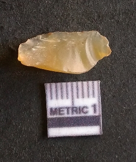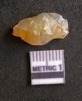 | Description / विवरण | The chalcedony flake is pale yellow in color. Translucent in appurtenance. The piece is shows sharp pointed ends and flake scars on the surface. As a result of flaking. |