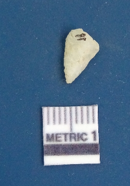 | Description / विवरण | The quartz flake has sharp flaked edges and pointed ends as a result of flaking. The piece is semi-transparent in nature with irregular fracture pattern. The piece is roughly triangular in shape and has a prominent bulb of percussion. |