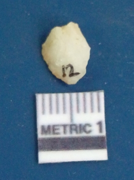| Description / विवरण | The quartz flake has sharp flaked edges and pointed ends as a result of flaking. The piece is semi-transparent in nature with irregular fracture pattern. The piece is roughly triangular in shape and has a prominent bulb of percussion. |