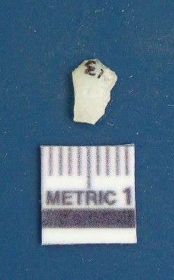 | Description / विवरण | The quartz flake has sharp flaked edges and pointed ends as a result of flaking. The piece is semi-transparent in nature with irregular fracture pattern. The piece is roughly triangular in shape and has a prominent bulb of percussion. |