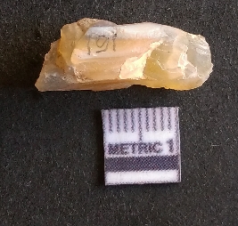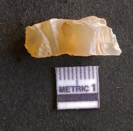 | Description / विवरण | The chalcedony flake is pale yellow in color. Translucent in appurtenance. The piece is shows sharp pointed ends and flake scars on the surface. As a result of flaking. |