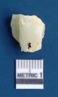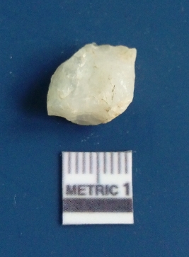 | Description / विवरण | The quartz flake has sharp flaked edges and pointed ends as a result of flaking. The piece is semi-transparent in nature with irregular fracture pattern. The piece is roughly triangular in shape and has a prominent bulb of percussion. |