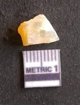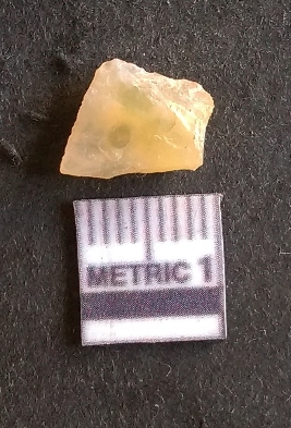 | Description / विवरण | The chalcedony flake is pale yellow in color. Translucent in appurtenance. The piece is shows sharp pointed ends and flake scars on the surface. As a result of flaking. |