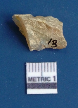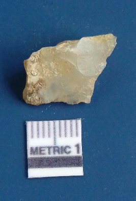 | Description / विवरण | It is chalcedony flake, translucent in appearance. The piece shows sharp pointed ends and flake scars on the surface as a result of flaking. The piece shows a bulb of percussion. |