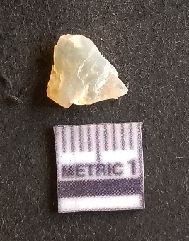 | Description / विवरण | The chalcedony flake is pale yellow in color. Translucent in appurtenance. The piece is shows sharp pointed ends and flake scars on the surface. As a result of flaking. |
