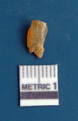 | Description / विवरण | It is chalcedony flake, translucent in appearance. The piece shows sharp pointed ends and flake scars on the surface as a result of flaking. The piece shows a bulb of percussion. |