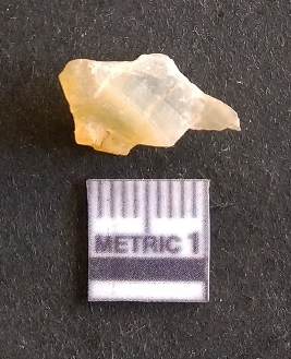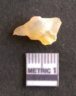 | Description / विवरण | The chalcedony flake is pale yellow in color. Translucent in appurtenance. The piece is shows sharp pointed ends and flake scars on the surface. As a result of flaking. |