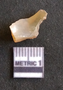 | Description / विवरण | The chalcedony flake is pale yellow in color. Translucent in appurtenance. The piece is shows sharp pointed ends and flake scars on the surface. As a result of flaking. |