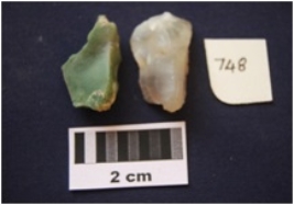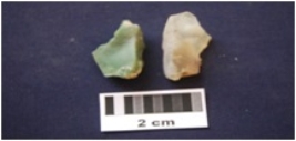| Description / विवरण | Chalcedony 1 Chert 1 Total No. of Debitage 2. Two flakes, made on chalcedony and chert. Prepared platform, diffused bulb on ventral side. By-product of tool manufacture. |