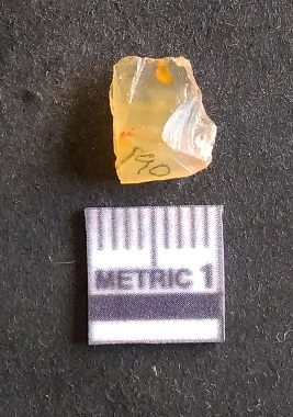 | Description / विवरण | The chalcedony flake is pale yellow in color. Translucent in appurtenance. The piece is shows sharp pointed ends and flake scars on the surface. As a result of flaking. |