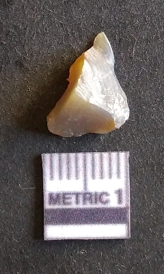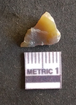 | Description / विवरण | The chalcedony flake is pale yellow in color. Translucent in appurtenance. The piece is shows sharp pointed ends and flake scars on the surface. As a result of flaking. |