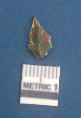 | Description / विवरण | It is a moss agate fragment, translucent in appearance. Natural greenish patches on the fragment, with sharp side rides and flaked scars on the surface. |