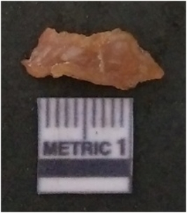 | Description / विवरण | It is chalcedony flake, translucent in appearance. The piece shows sharp pointed ends and flake scars on the surface as a result of flaking. The piece shows a bulb of percussion. |