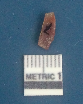 | Description / विवरण | The chert piece is dark in color, with a prominent bulb of percussion and sharp flaked edges. The piece is a part of lithic debitage or raw material for lithic knapping. The piece shows clear ripple marks and bulb of percussion. |