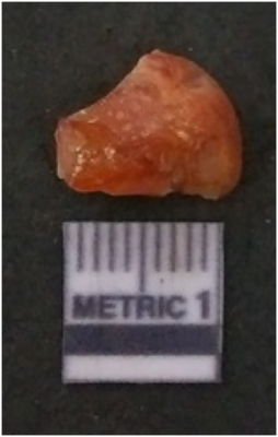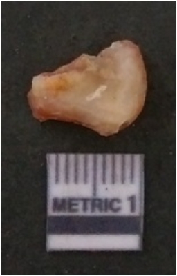 | Description / विवरण | It is chalcedony flake, translucent in appearance. The piece shows sharp pointed ends and flake scars on the surface as a result of flaking. The piece shows a bulb of percussion. |