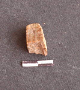 | Description / विवरण | It s a chert piece with sharp edges and striking platform on the proximal end. Flakes scars on the surface with ripples on it. |