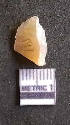 | Description / विवरण | The chalcedony flake is pale yellow in color. Translucent in appurtenance. The piece is shows sharp pointed ends and flake scars on the surface. As a result of flaking. |