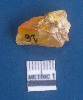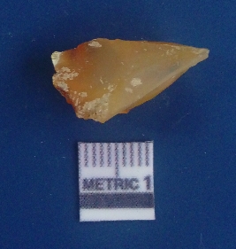 | Description / विवरण | It is chalcedony flake, translucent in appearance. The piece shows sharp pointed ends and flake scars on the surface as a result of flaking. The piece shows a bulb of percussion. |